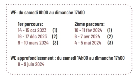 Week-end approfondissement pour parcours 1 et 2
