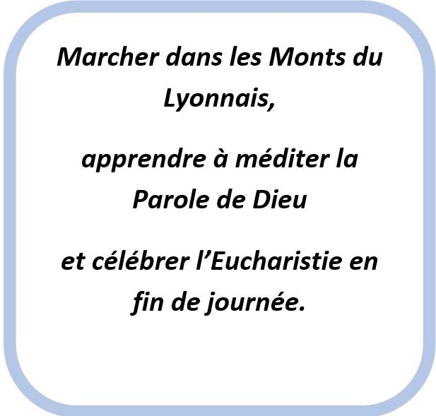 Marcher dans les Monts du Lyonnais, apprendre à méditer la Parole de Dieu et célébrer l’Eucharistie en fin de journée.