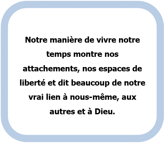 Notre manière de vivre notre temps montre nos attachements, nos espaces de liberté et dit beaucoup de notre vrai lien à nous-même, aux autres et à Dieu.