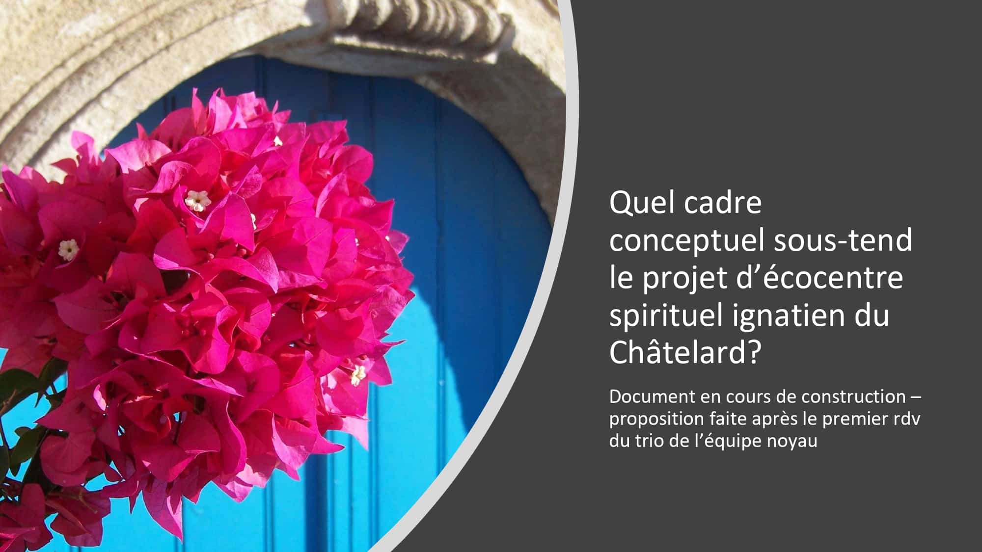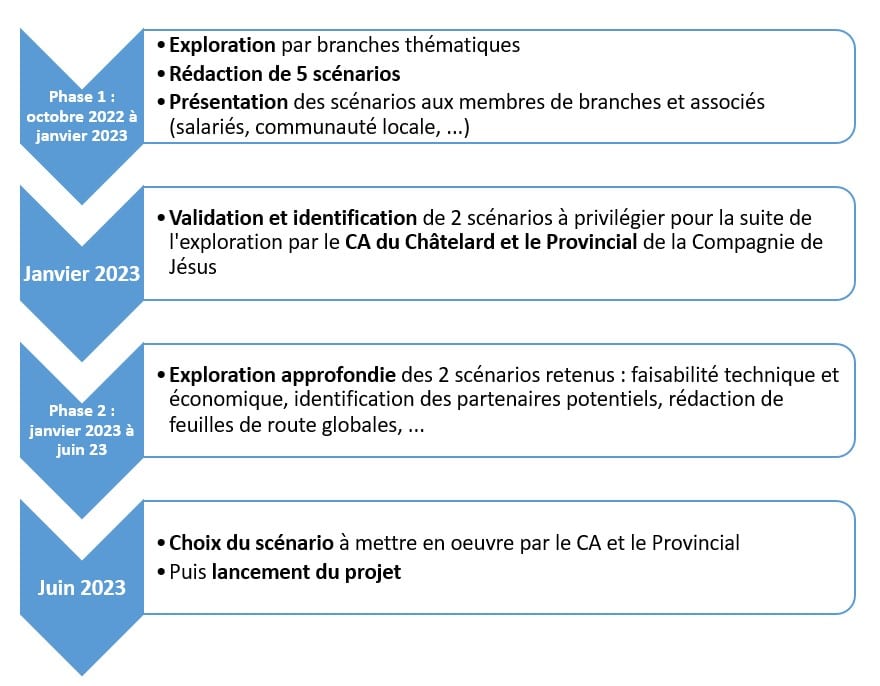 Pour tâcher de répondre à ces attentes, une mission d’exploration a été menée au Châtelard sur l’année 2022-2023. Elle a permis de déterminer que le Centre spirituel du Châtelard est un cadre favorable pour mettre la tradition spirituelle ignatienne (en particulier l’accompagnement, le discernement et la pédagogie) au service de celles et ceux qui, collectivement ou individuellement, souhaitent s’engager sur un chemin de conversion écologique intégrale en la faisant résonner avec leur foi.