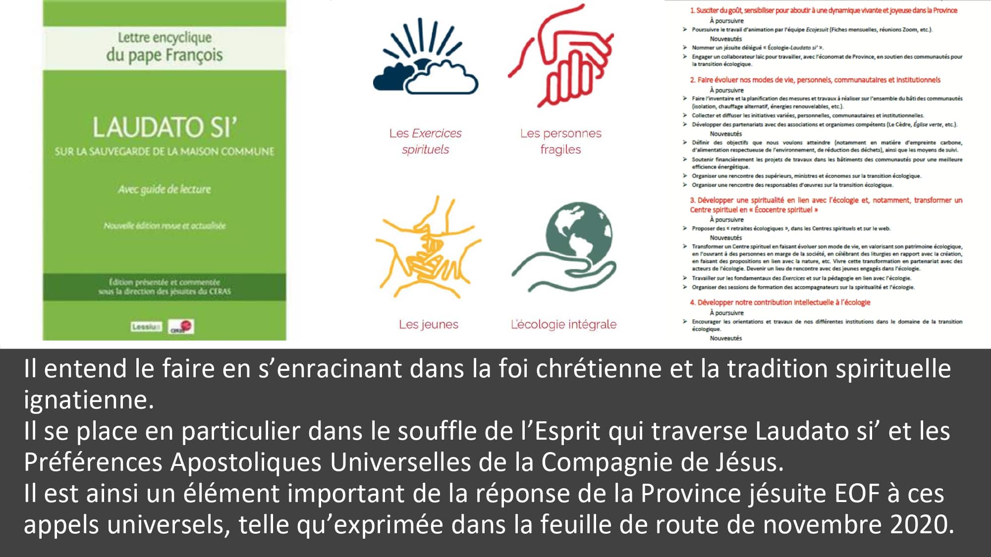 A la suite de l’encyclique Laudato si’ (2015) et des Préférences Apostoliques universelles de la Compagnie de Jésus (2019), les jésuites de la Province d’Europe Occidentale Francophone (EOF) ont décidé de s’inscrire davantage, et avec d’autres, sur les chemins de l’écologie intégrale pour « prendre soin de notre maison commune ».