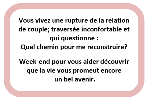 - Une retraite qui nous accompagne dans notre chemin suite au divorce. Qui nous accepte là où on en est et qui nous guide pour la suite.